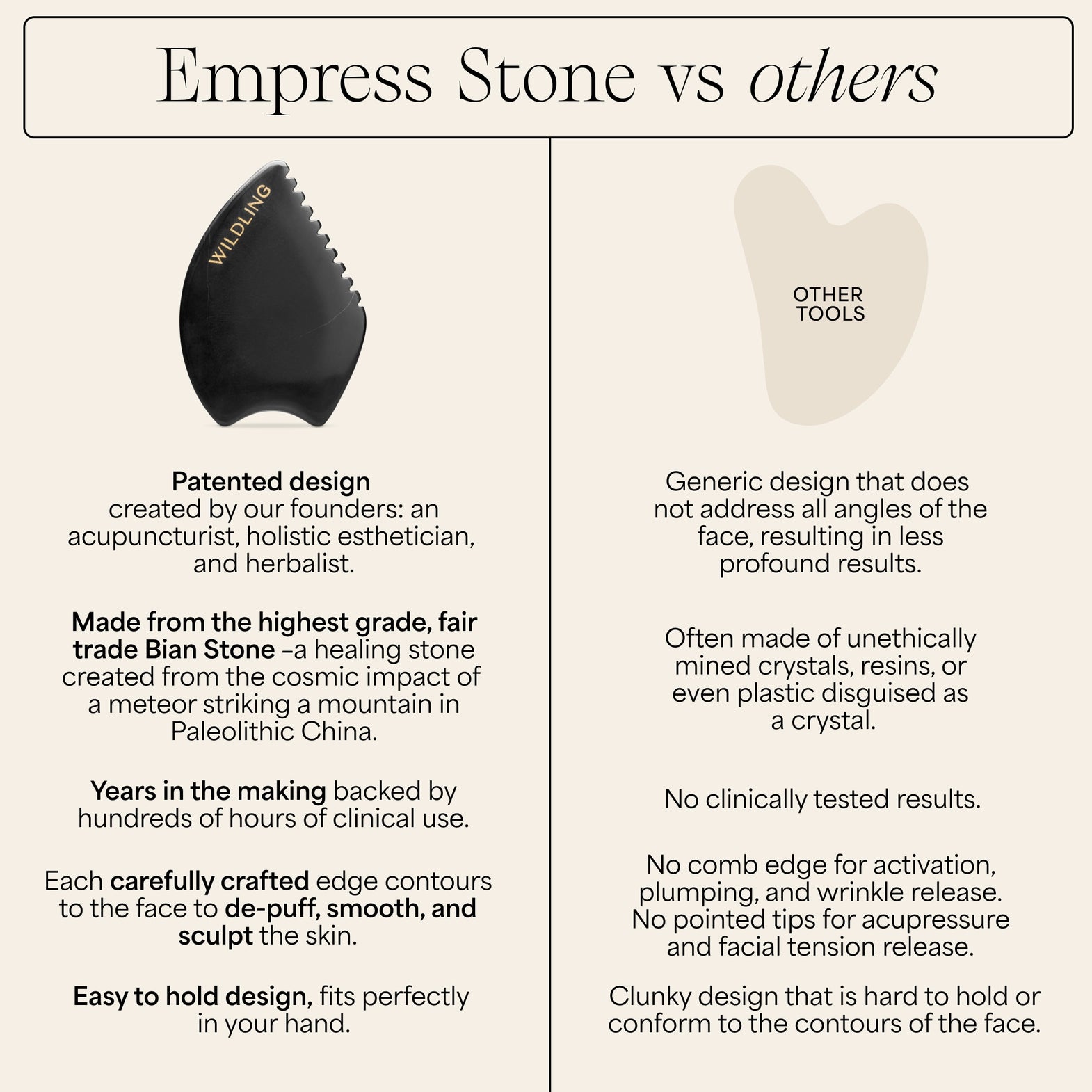 Artisan crafted from sustainably sourced Bian stone, an amalgamate of 40+ minerals known for their healing properties. Known for its rejuvenating properties, Bian stone formed when a meteor struck a mountain in China 65 million years ago. Each edge of the tool is intentionally designed and tested to yield the best possible results.