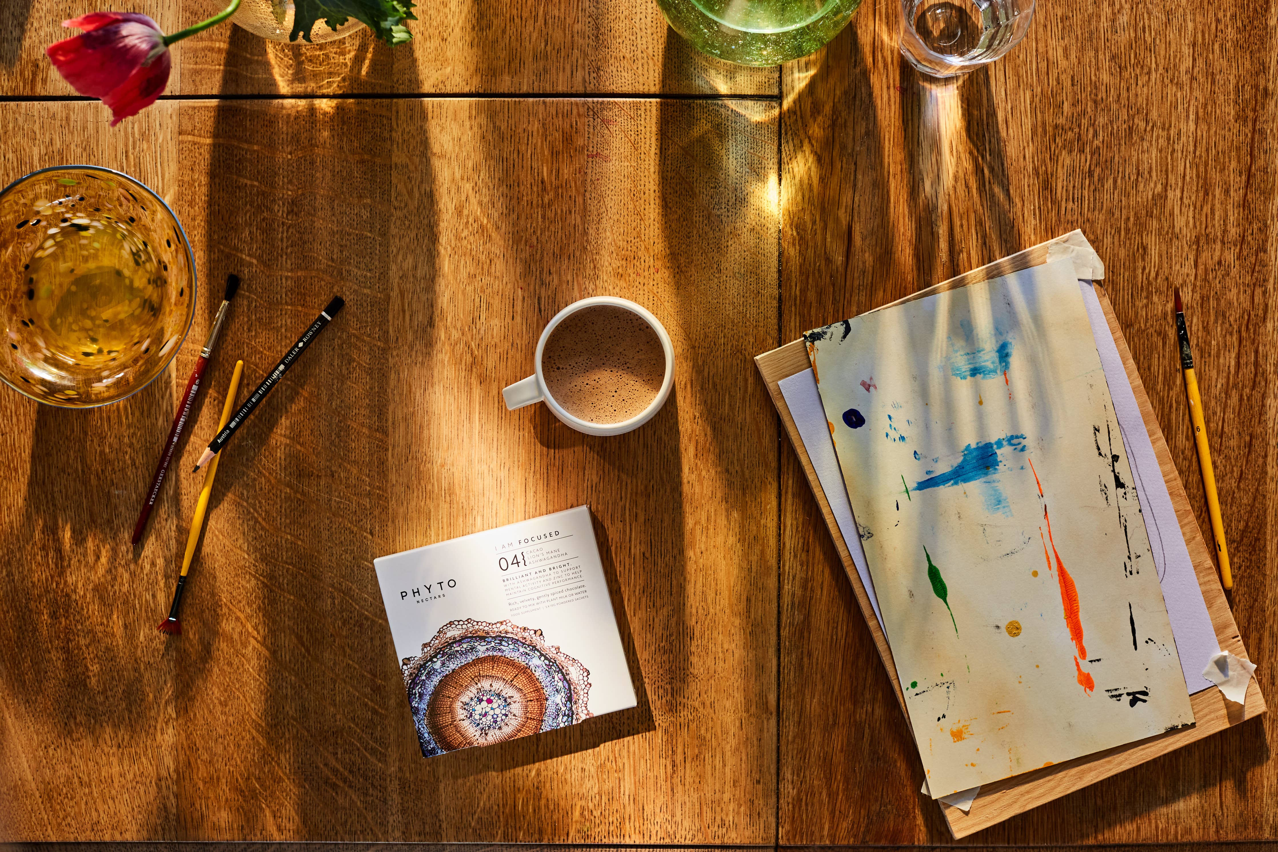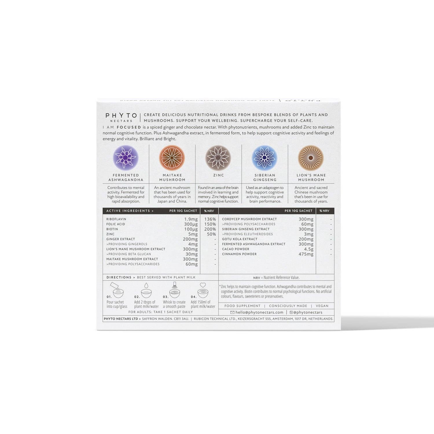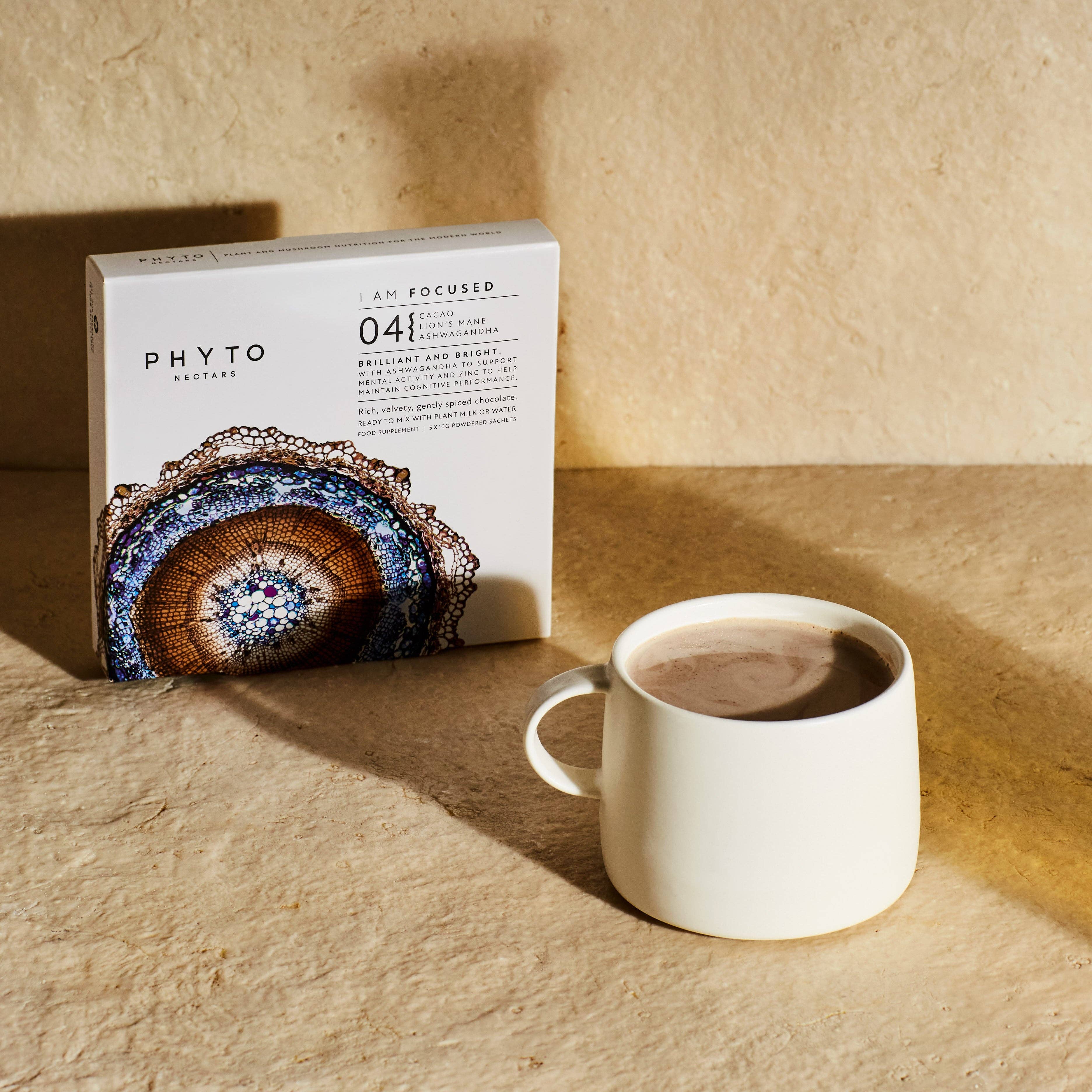 I AM FOCUSED is a spiced chocolate nectar to support cognitive function and supercharge your mind. With phytonutrients, mushrooms and added zinc to maintain normal cognitive function. With the addition of a fermented ashwagandha extract, to help support mental activity, increase energy, focus and vitality. Plus, maitake mushroom, gotu kola, Siberian ginseng, cordyceps mushroom, ginger and lion’s mane mushroom. Get the high without the low.