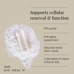 NMN, derived from niacin (vitamin B3), naturally occurs in the body and is essential for producing nicotinamide adenine dinucleotide (NAD+), crucial for cellular renewal. KIKI Health's NMN formula ensures unrivaled absorption efficacy and a purity level of at least 99%, utilizing advanced enzymatic technology. With each capsule, unlock NMN's full potential for cellular rejuvenation and vitality.